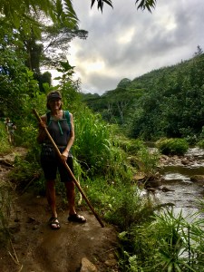 After reaching the trailhead, deep in the jungle of Wailua River Valley, I grab a broken tree limb to use as a walking stick and take my first few steps down a narrow path swallowed up by towering palms, grasses, ferns and wildflowers. As I trek further into this rainforest that tests my physical endurance, I look down and see my faithful Chacos clambering across uneven ground and velvety moss-covered boulders. They embrace the trail like an old friend. Enormous tree roots crisscross along this mud-paved path, and my feet sink deep into the ground until brown water rises to meet my knees. An arduous journey, yet I trust my courage to continue. Each step yields reward and triumph: Made it through that one! And the next, and the next.